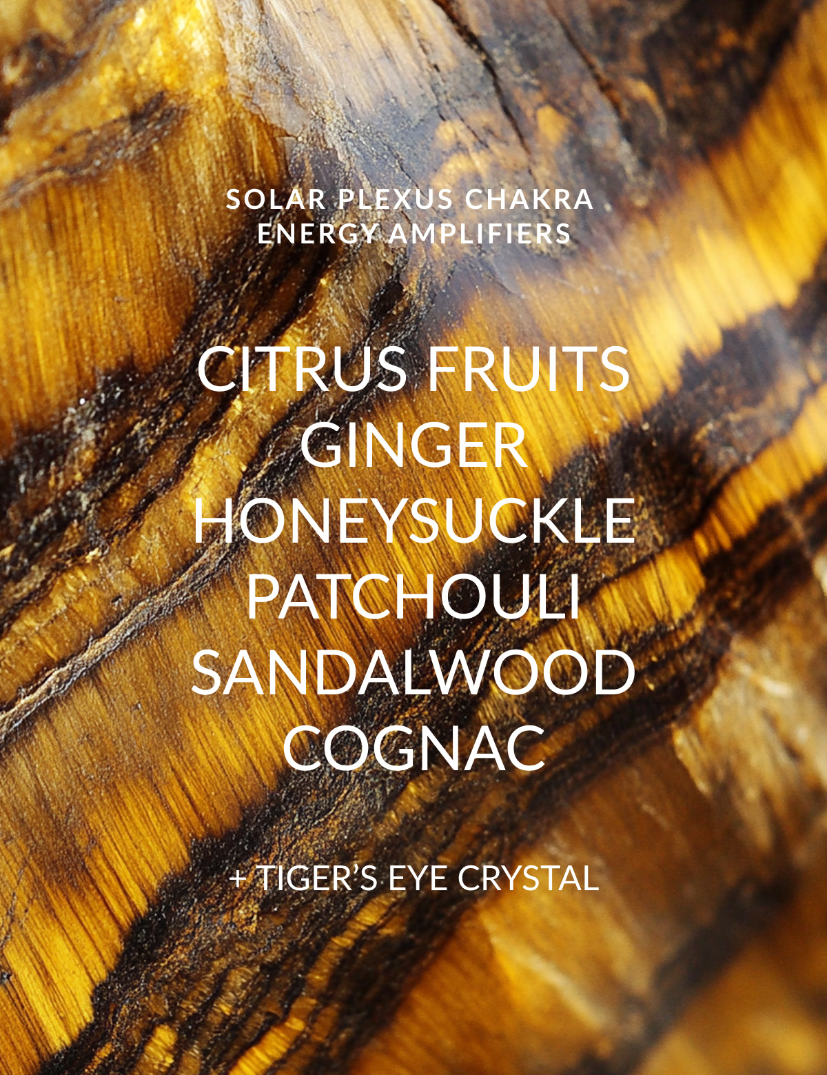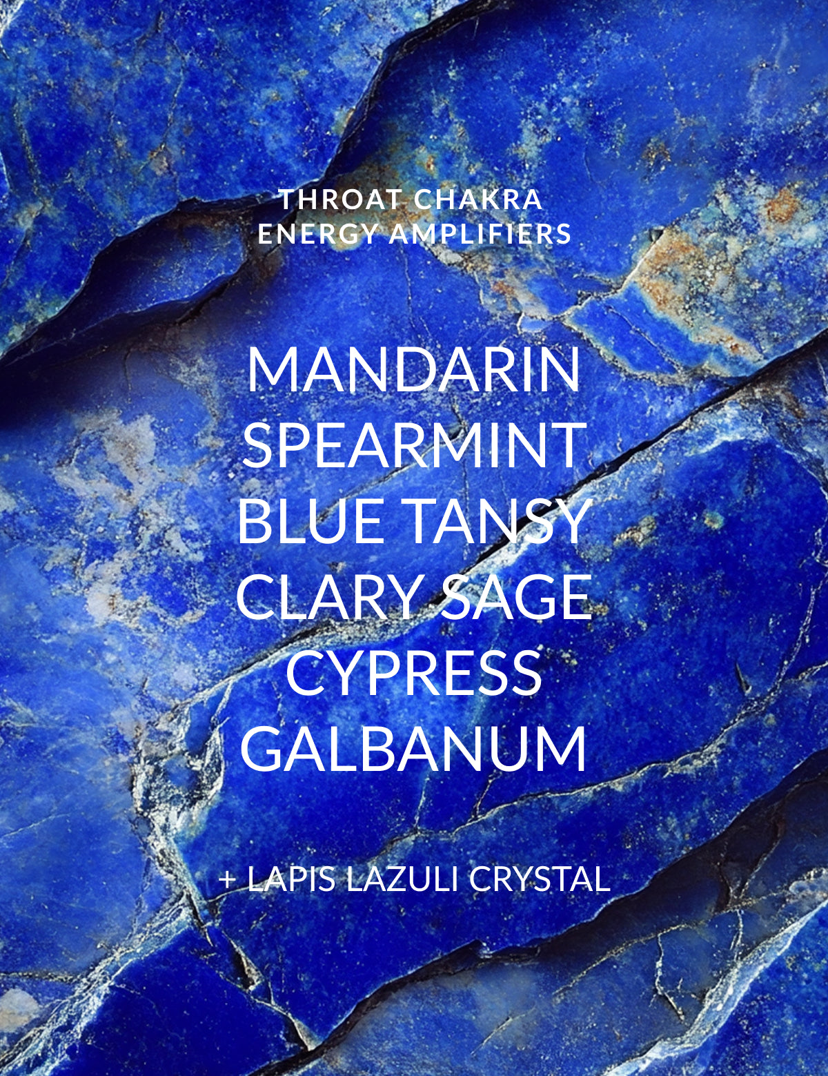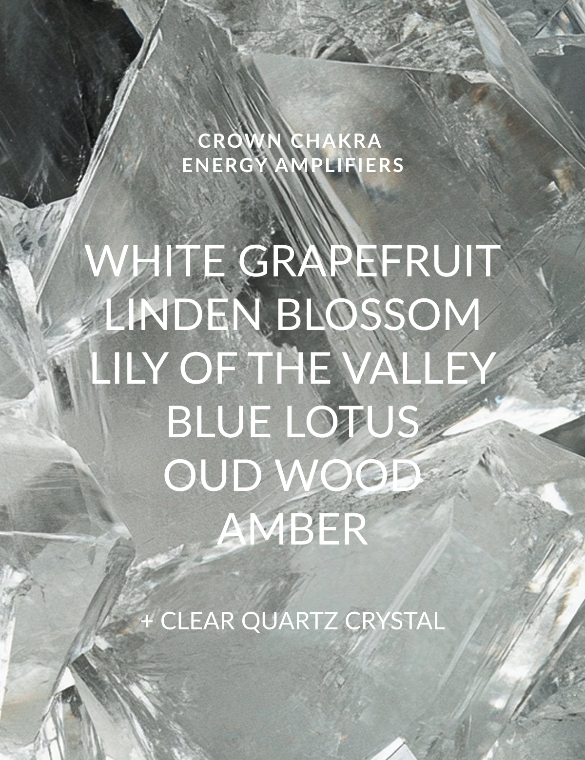 Each parfum bottle contains an activated crystal to amplify the vibrational frequency of the chakra it aligns with.